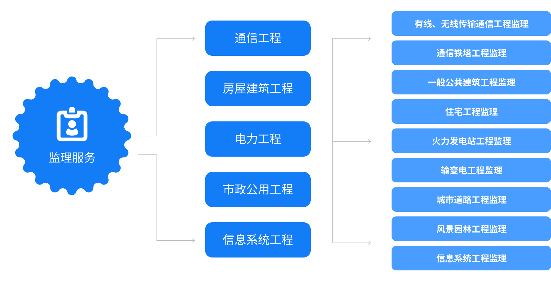 可承担土建、电气设备、暖通管道、消防设施、强弱电安装等房屋建筑类监理服务。